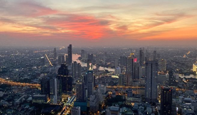 Wer Bangkok von ganz oben erleben möchte, fährt auf die Aussichtsplattform des Wolkenkratzers King Power Mahanakhon. Das markante «pixelige» Design des Gebäudes stammt übrigens vom deutschen Architekten Ole Scheeren.