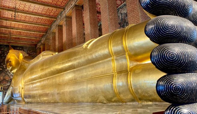 Die prächtige Anlage des Grand Palace gehört zu den wichtigsten Sehenswürdigkeiten des Landes. Im Tempel Wat Phra Kaeo befindet sich der berühmte Smaragd-Buddha – das wohl wichtigste Nationalheiligtum Thailands. Eigentlich ist die Figur übrigens aus grüner Jade gefertigt. Nur wenige Schritte entfernt liegt der traditionsreiche Wat Pho. Weltberühmt ist der 46 Meter lange goldene liegende Buddha, der hier untergebracht ist.