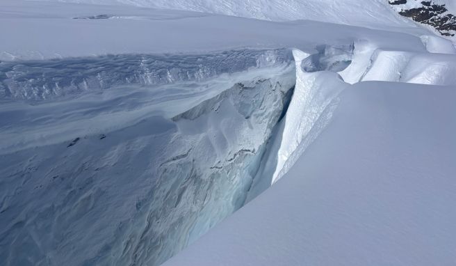Als ich auf der Wanderung schon denke, es kann kaum beeindruckender werden, passieren wir über eine Art kleine Brücke eine breite und recht tiefe Gletscherspalte. «Der Übergang ist nur aus Schnee, da ist kein Eis drunter, siehst du?», fragt Aldo, als wir die Stelle überquert haben.