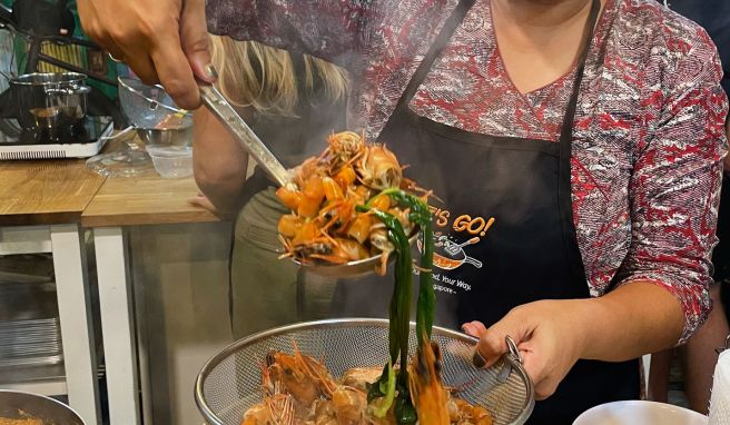 Das Ehepaar aus Frankfurt ist begeistert vom Ergebnis. «Sehr aromatisch und leicht zu machen. Das werden wir zu Hause auf jeden Fall nachkochen», versichert Gisela Stahl. Alle in der Runde genießen ihr erstes selbstgemachtes Laksa, im Übrigen das Nationalgericht Singapurs. Laksa, erklärt Nair, habe seinen Ursprung in der chinesisch-malaiischen Peranakan-Mischkultur, die Singapurs Esskultur bis heute prägt. Die Küche ihres Landes spiegle in gewisser Weise auch den Bevölkerungsmix wider: Rund 75 Prozent der Einwohner des Stadtstaates seien chinesischer Herkunft, 15 Prozent stammen aus Malaysia und 10 Prozent aus Indien.