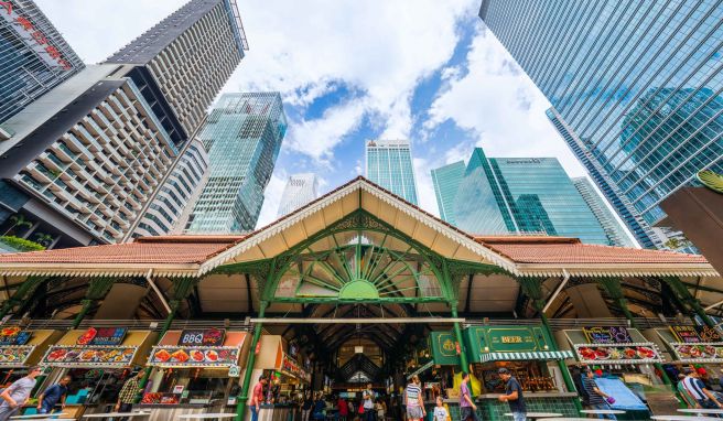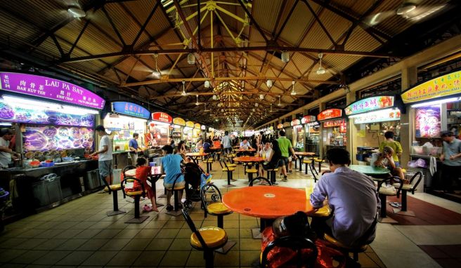 Doch in den Hawker-Zentren, diesen unklimatisierten Hallen mit unzähligen Garküchen und Marktständen für Gemüse, Obst, Fleisch und Fisch, schlägt das kulinarische und gesellschaftliche Herz Singapurs. Sie sind über die ganze Stadt verteilt.