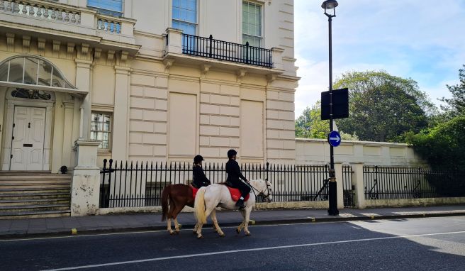 Ausritte für Kinder und Erwachsene bis 80 Kilogramm: Einstündiger Ausritt mit zwei Personen umgerechnet ca. 170 Euro, privater Ausritt zwischen ca. 140 bis 175 Euro. Etwa bei Hyde Park Stables (www.hydeparkstables.com) und Ross Nye Stables (www.rossnyestables.co.uk). In beiden Ställen können Helme und Stiefel geliehen werden; Vorerfahrung nicht vonnöten.