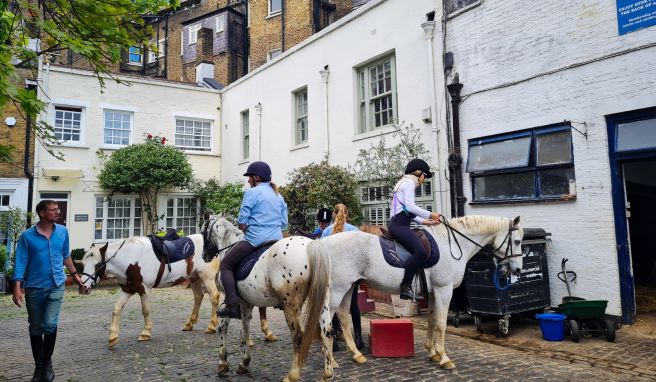 Am Stall in der Gasse Bathurst Mews angelangt, wimmelt es vor Ponys und Pferden. Ein surreal dörflich anmutendes Miteinander inmitten der 9-Millionen-Stadt. Die nächsten Reiter satteln auf; ein Tross des benachbarten Stalls Ross Nye Stables zuckelt durchs Tor. Mitarbeitende versorgen und pflegen die Tiere – oder schaufeln Pferdeäpfel vom Kopfsteinpflaster der charmanten Gasse, die mit ihren cremefarbenen niedrigen Häusern ihrerseits ein Hingucker ist.