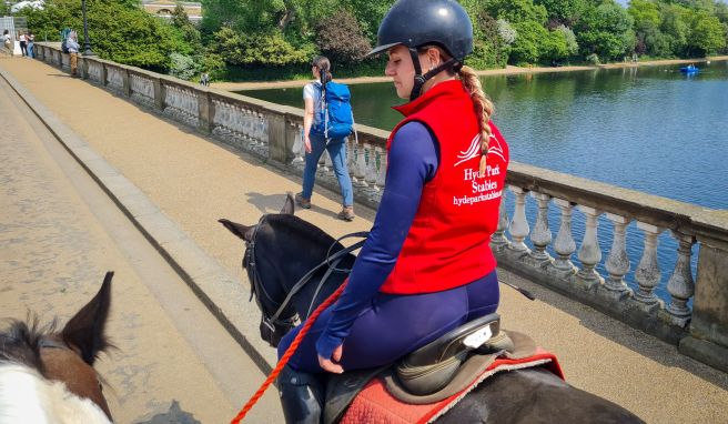 Auf der eigens Pferden vorbehaltenen «horse lane» geht es im Takt des Hufschlags über die Serpentine Bridge hinweg über den gleichnamigen See. Baumkronen und Cafés rahmen das Ufer, Tretboote tuckern übers Wasser - eine wahrlich erhabene Sattelperspektive.