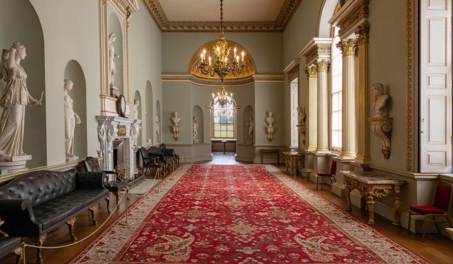 Einer der ersten Touristen war auch Graf Thomas Coke. Er war erst 15 Jahre alt, als er 1712 nach Italien geschickt wurde. Im Süden kaufte er Kunst, um sein künftiges Familienhaus zu dekorieren: Holkham Hall in Norfolk. Diesen prächtigen Palazzo ließ Coke nach italienischem Vorbild nach seiner Rückkehr bauen. An den mit purpurrotem Damast bespannten Wänden in den Salons hängen bis heute Bilder vom Petersdom und Kolosseum in Rom.