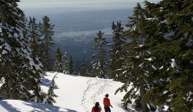 Wenig Lifte, große Aussicht: Blick vom Grouse Mountain auf Vancouver. Foto: Hubert Kang/Destination Vancouver/Kindred & Scout/dpa-tmn