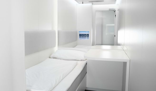 «In den rund vier Quadratmeter großen Kabinen wartet ein frisch bezogenes Bett, ein Tisch sowie ein Touchscreen, mit dem die Beleuchtung gesteuert, der Wecker gestellt oder Musik ausgewählt werden kann», heißt es.