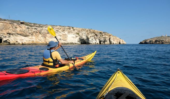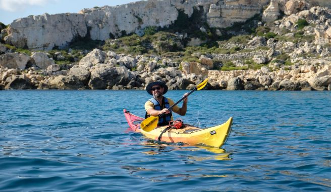 Paddeln ist in einem Inselstaat wie Malta an vielen Stellen möglich. Doch Mistra Bay im Nordwesten ist so gut vor Wind und Wellen geschützt, wie Alwyn Bromhead sagt, dass schon die Römer mit ihren Galeeren hier ankerten. Im offenen Kajak gleitet der 47-Jährige entlang der zerklüfteten Felsküste hinaus aufs Meer.