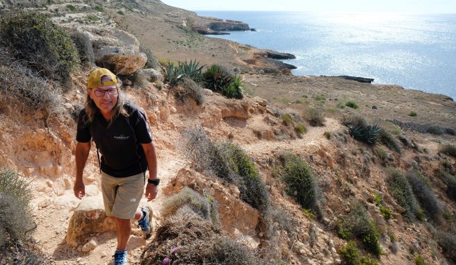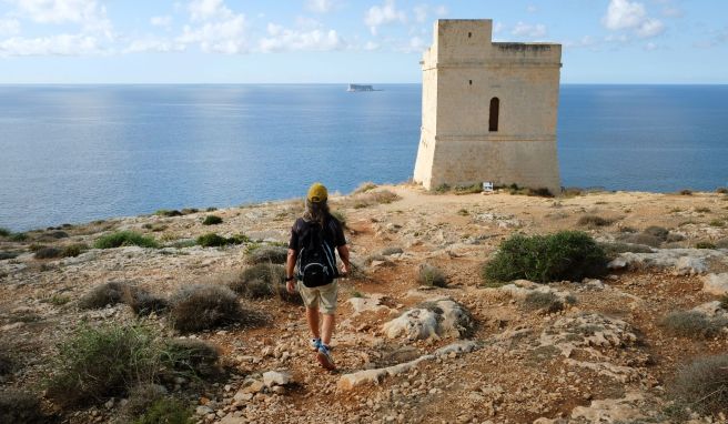 «Malteser gehen nicht gerne», sagt Joseph Vella. Er selbst dagegen wandert schon sein ganzes Leben. Einer der Lieblingstouren des 61-Jährigen startet am Megalith-Tempel Ħaġar Qim an der Südküste. Dahinter geht es durch Artischocken-Disteln und Thymianbüsche hinab zum Torri tal-Ħamrija, einem der vielen Wachtürme, die einst vor Angriffen osmanischer Piraten warnten.