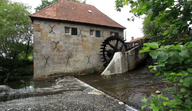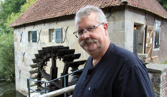 Startpunkt der Mühlenroute ist Mallum, eine dieser Wassermühlen und heute ein Museum. Samstags öffnet sich deren wuchtige Eingangstür, und manchmal treffen die Besucher auf Detlev Flores, der sich ehrenamtlich um das ursprünglich 1748 errichtete Gebäude am Flüsschen Berkel kümmert. Der 64-jährige Mühlenexperte aus Wesel am Niederrhein kennt die Geschichte: Bis 1943 sei die Mühle gewerblich zum Mahlen von Korn und Gerste betrieben worden, nach dem Krieg wurde sie restauriert.