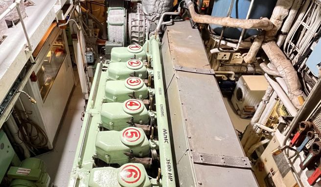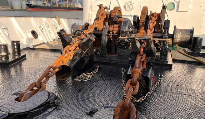 Werden die beiden Uralt-Anker gesetzt, sprühen die dicken, rostigen Metallketten Funken. Ebenfalls von Anfang an steht das Notsteuerrad auf dem Achterdeck. Es ist direkt mit dem Ruderblatt verbunden und könnte auch heute im Notfall noch eingesetzt werden.
