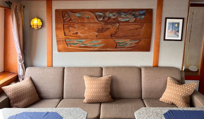 Musealen Charakter hat das Schiff für sich selbst genommen schon. Es ist aber auch eine schwimmende Galerie. Maritime Holzschnitte, Emaille-Arbeiten und Glaskunst zieren Speisesäle, Treppenhaus und den Salon. Ihr Schöpfer ist Paul René Gauguin, ein Enkel des berühmten Malers Paul Gauguin.