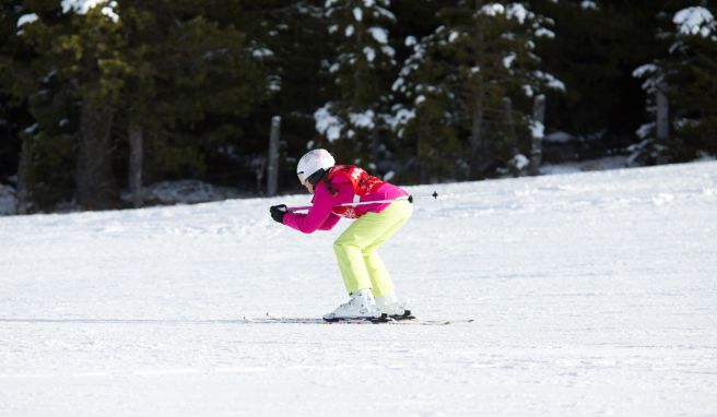 «Pizza!»: Die Skispitzen bewegen sich zueinander, die Enden auseinander - so bremst man. Foto: Florian Schuh/dpa-tmn