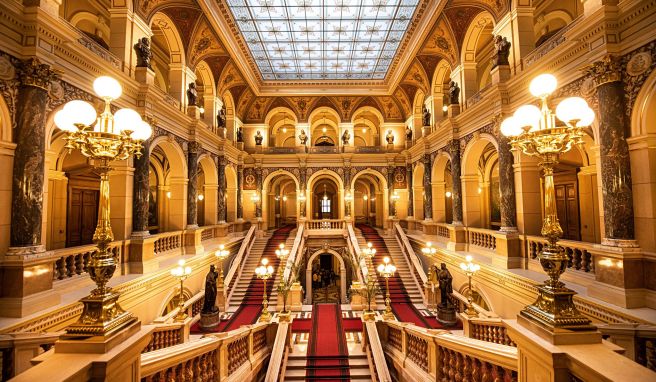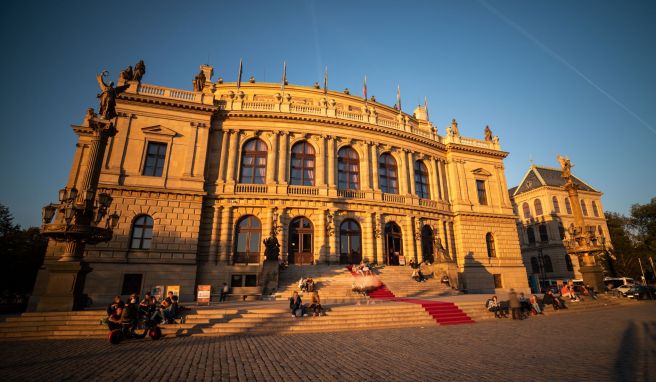 In Sichtweite der Karlsbrücke hebt sich der Neorenaissancebau des Rudolfinums ab. Eine pompöse Treppe, flankiert von Laternenkränzen, führt hinauf. Im Konzertsaal erklingen klassische Töne; hier hat die Tschechische Philharmonie ihren Sitz.