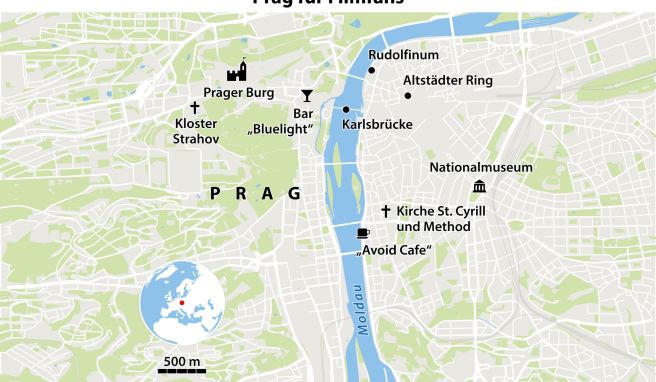 Touren: Über die offizielle Prag-Website lässt sich unter prague.eu/de/produkt/kamera-klappe-prag ein zweistündiger Rundgang zu den Drehorten der berühmtesten Filme buchen; ab 3.000 Kronen für bis zu zwei Teilnehmer.