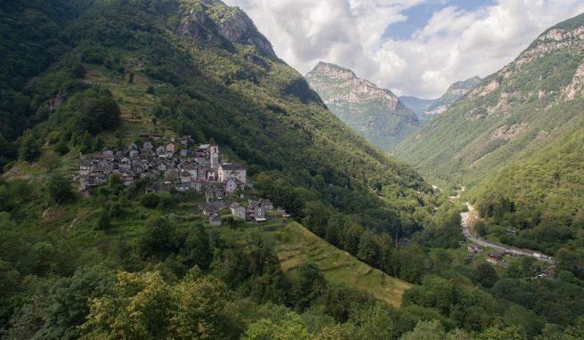 Steine, die der Tessiner Stararchitekt Mario Botta auch für seine Kirche in Mogno verwendet hat. Rund um das gestreifte Gotteshaus in Mogno und in vielen anderen Orten in den Tälern werden auch immer mehr verfallende Rustici - traditionelle Häuser im Tessin - für zivilisationsgeplagte Großstädter saniert.