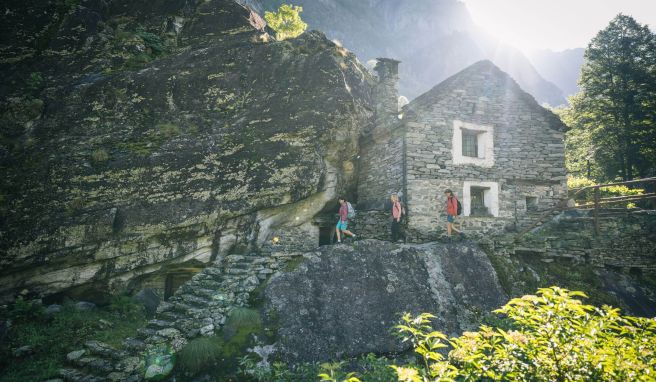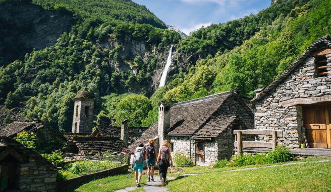 Ein Gefühl wie im Dschungel: Wanderer im Val Bavona. Foto: Alessio Pizzicannella/Ticino Turismo/dpa-tmn