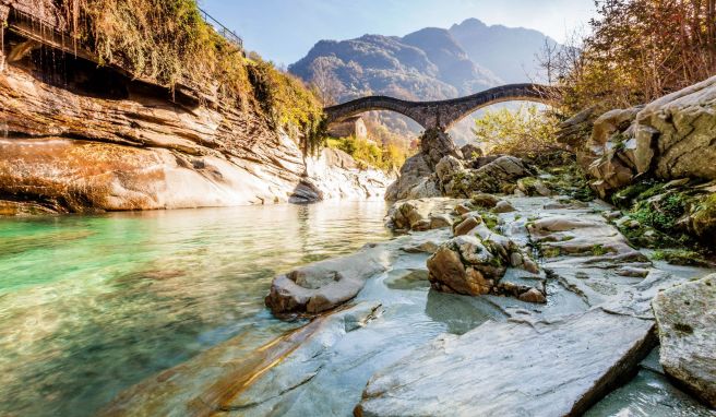 So stauen sich im Verzasca-Tal Autos, Motorräder und Busse - der Grund ist die berühmte «Ponte dei Salti» aus dem 17. Jahrhundert: Kühn schwingt sich die Steinbrücke über die türkisfarbene Verzasca, deren starke Strömung sich durch Granitfelsen gefressen hat. Wunderbar anzusehen, zweifelsohne.