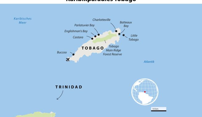 Unterkünfte: Empfehlenswert sind unter anderem «Castara Retreats»: castraretrets.com; «Coco Reef Tobago»: cocoreeftobago.com; «Manta Lodge»: mantalodgetobago.com; «Blue Water Inn»: bluewatersinn.com.