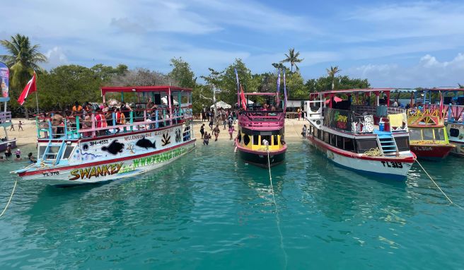 Auf Partybooten fahren sie in die vorgelagerte Lagune, um sich im flachen kristallklaren Wasser bei Rum und lauter Musik zu amüsieren. Auf einer kleinen Sandinsel werden frische Langusten gegrillt. Sobald die Sonne untergeht und alle wieder weg sind, wird es aber besonders spannend.