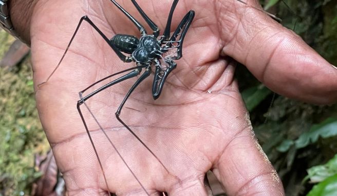Urwaldriesen spenden angenehmen Schatten in der Tropenhitze. Die Rufe der Vogelexoten durchbrechen das monotone Zirpen der Zikaden. Newton zeigt uns ein winziges Erdloch mit einer Art Fallklappe aus Moos und Erde. Er öffnet sie, und heraus kommt eine handgroße Falltür-Spinne.