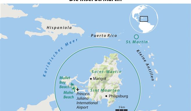 Anreise: Der Princess Juliana International Airport (SXM) wird von Europa aus nonstop von KLM ab Amsterdam und Air France ab Paris bedient. Die Flugzeit beträgt zehn Stunden. Vor Ort ist ein Mietwagen hilfreich.