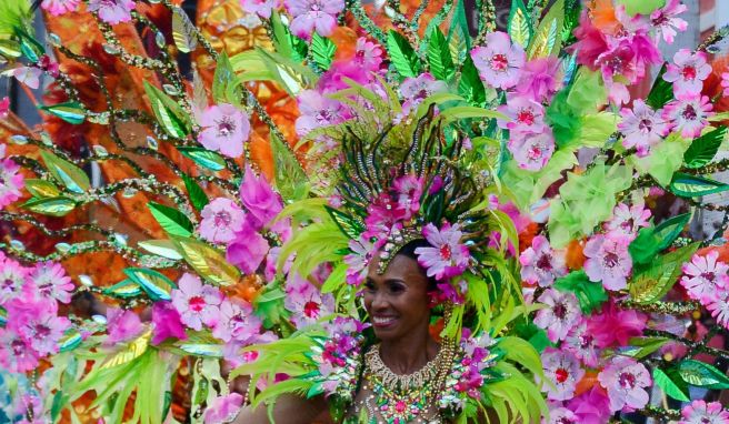 Bunt geschmückt und gut gelaunt: Karnevalistin in Sint Maarten. Foto: St. Martin Tourism Bureau/dpa-tmn